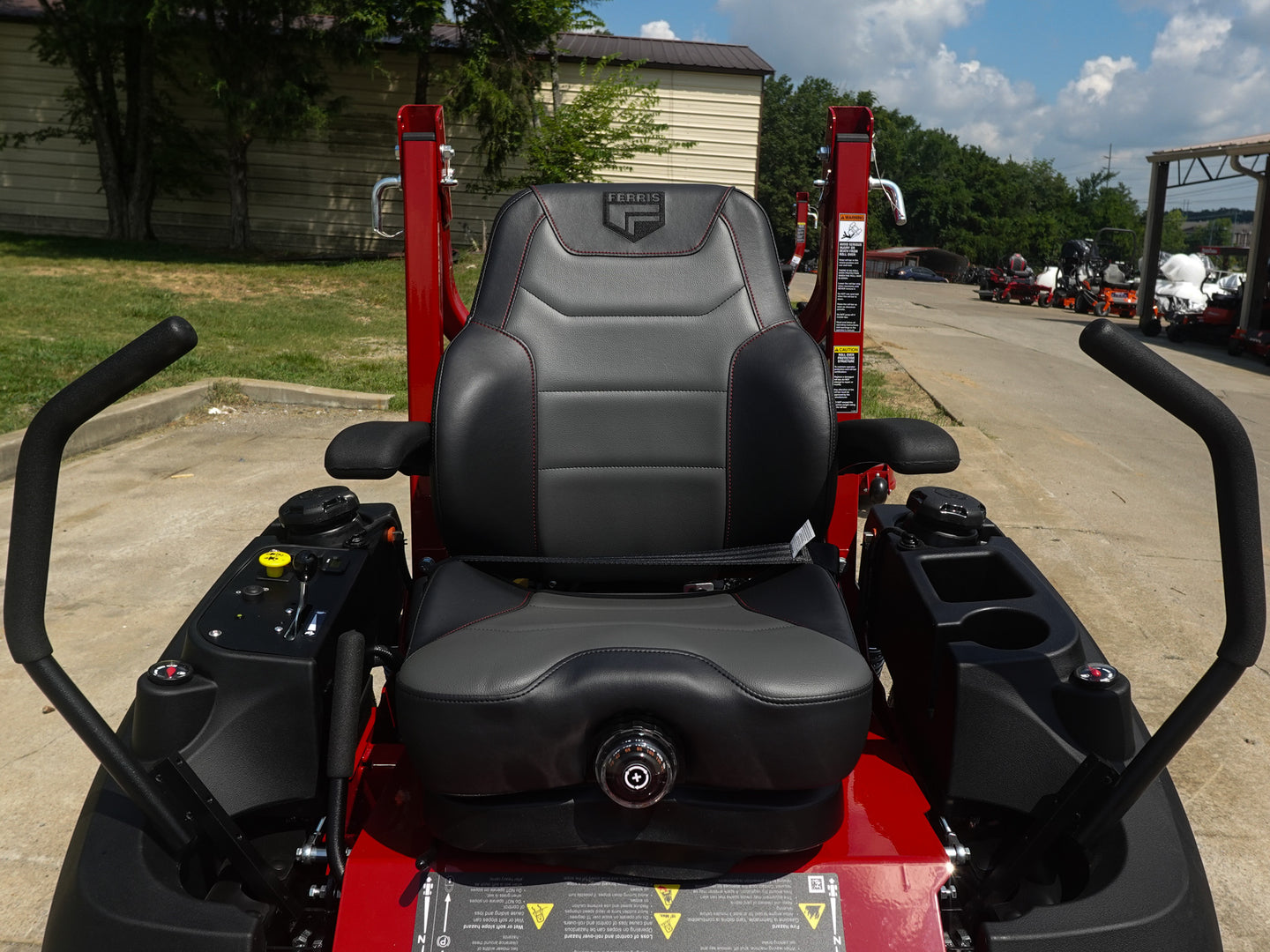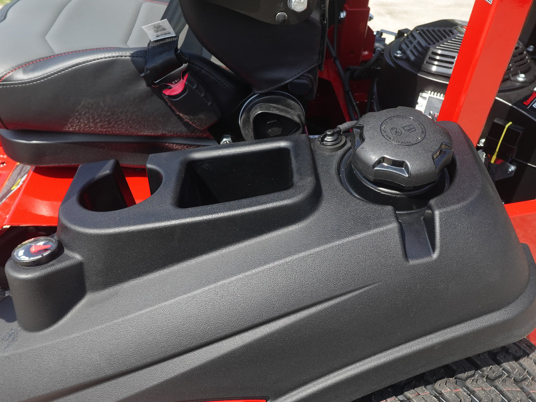 Luxury Ride Comfort – Premium high-back suspension seat includes a multi-position headrest, adjustable lumbar support, reclining capability, and padded armrests to reduce fatigue during long mowing sessions.