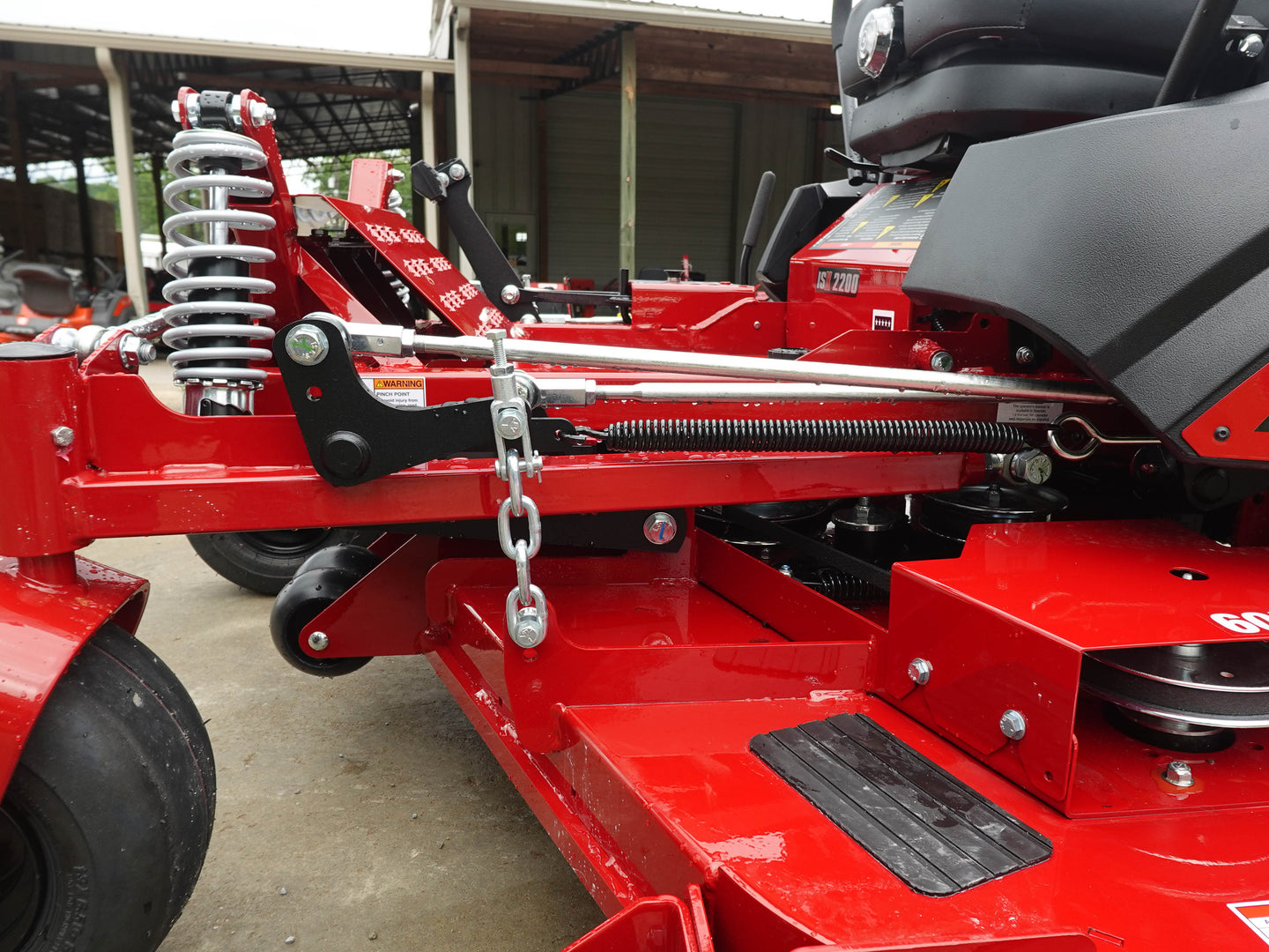 Advanced ForeFront™ Suspension System – Four upper and lower control rods with mower-specific shocks maintain vertical caster bearing alignment, delivering a smoother ride, better terrain adaptation, and an improved cut.