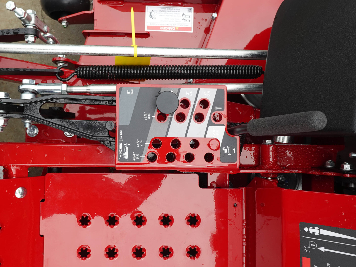 Effortless Adjustable Cut Height – Foot-operated deck lift with an adjustable pedal allows for quick height changes in ¼” increments, ranging from 1.5” to 5” for a custom mowing experience.