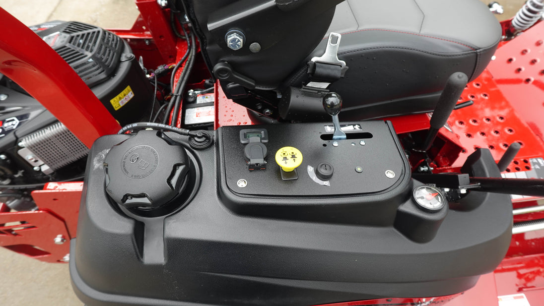 Premium Comfort Suspension Seat – High-back suspension seat with adjustable armrests, lumbar support, and reclining backrest ensures maximum comfort during long mowing sessions.