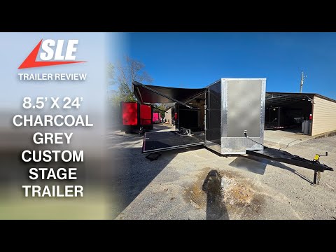 This 8.5' x 24' custom trailer delivers a professional-grade setup with a 16' stage, 18' awning, 8' interior height, and a sleek Charcoal Gray finish. Built on dual 7,000 lb axles with a full 30-amp electrical package, mag wheels, wood walls, and RTP flooring, it’s engineered for dependable performance and polished presentation. Additional upgrades—including an extended tongue, generator platform, stabilizer jacks, roller wheels, and LED lighting inside and out—make it fully equipped for events, mobile operations, and on-site activations.