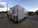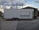 This 8.5' x 24' concession trailer offers a 9' commercial grease hood, a hand sink, 3 compartment sink, 8' concession window, and so much more!