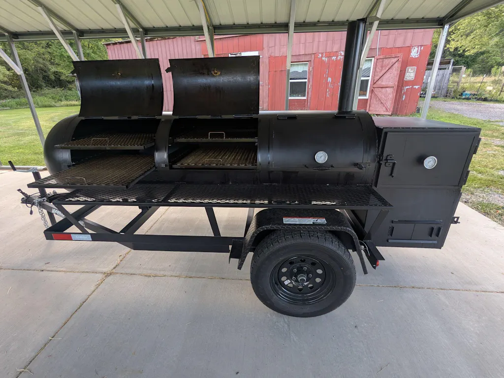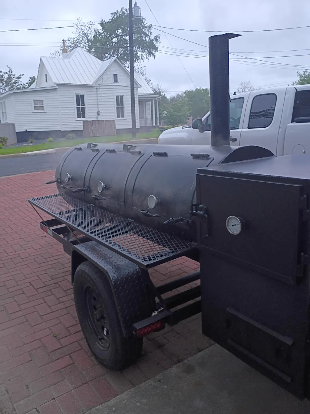 The 330-Gallon Pull Behind BBQ Smoker is built for pitmasters, caterers, and BBQ competitors who need serious cooking capacity, rugged construction, and dependable performance. With a massive quarter-inch thick barrel, slide-out cooking trays, and a durable firebox, this smoker delivers precision, versatility, and long-term durability.