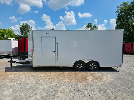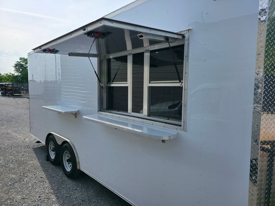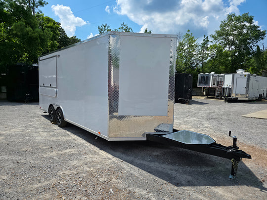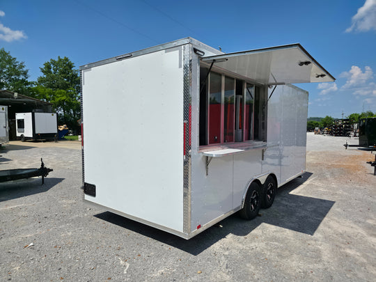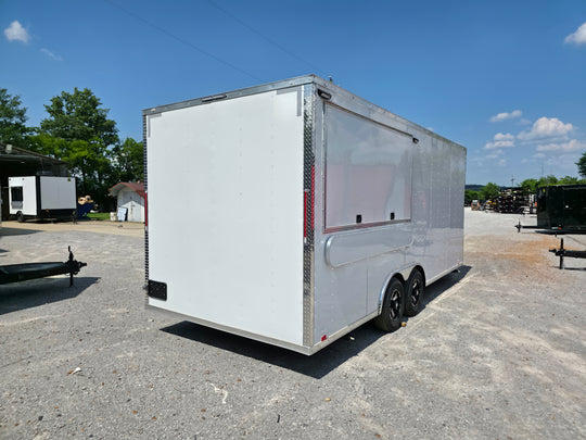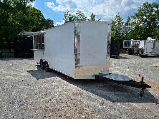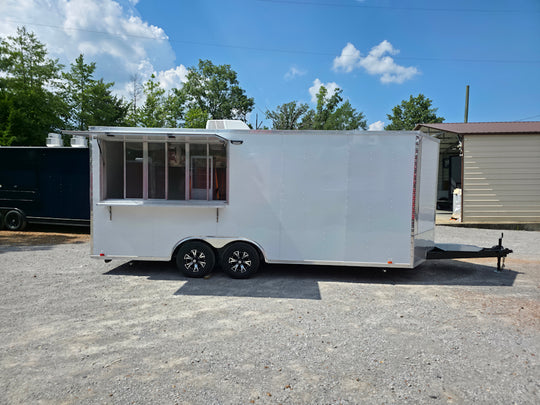 8.5 X 20 Black W/ Blackout Concession Trailer With 8' Porch Food Event Catering