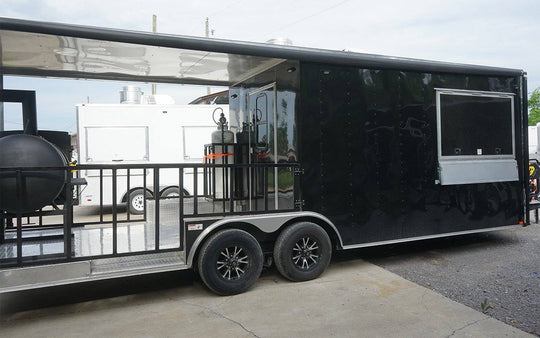8.5' x 24' Porch Style Black Concession Food Trailer