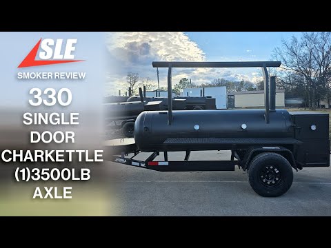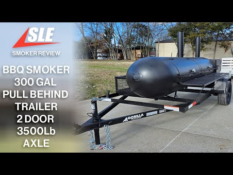 BBQ Smoker 2 Door 300 Gallon Trailer Pull Behind with Charcoal Grill on Front