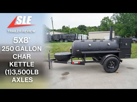 Pull Behind BBQ Smoker 250 Gallon with Round Charcoal Grill 3500lb Axle