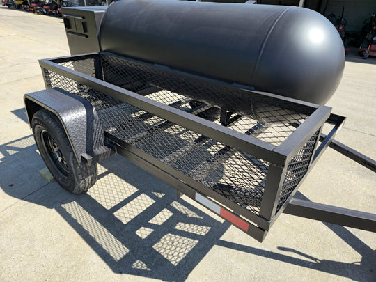 BBQ Smoker 330 Gallon Trailer Pull Behind with Wood Cage