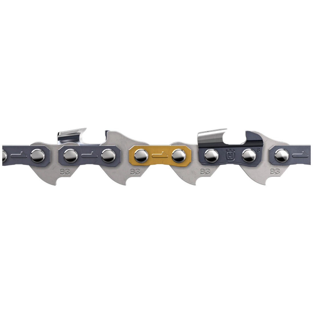 The Husqvarna 585422145 12" S93G chainsaw chain features a 3/8" mini pitch, .050" gauge, and 45 drive links. Designed for precision, safety, and easy maintenance.