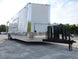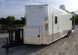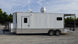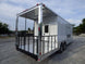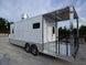 This concession trailer features am 11 foot commercial grease hood, a 6 foot concession window, a generator box on the nose, a 6 foot porch area with rear removable railing.