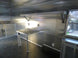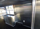 This concession trailer features an 11 foot commercial grease hood, restroom with toilet, light, roof vent and hand sink in living quarters, and an 8 foot porch area with 36 inch lower half wall and upper part to flip up be doors on sides and rear ramp door.