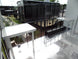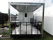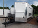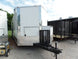 This concession trailer offers a 6 foot commercial grease hood, 12 foot porch area with removable railing, and a generator box with slide out tray and drop down leg.