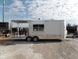 This concession trailer features a 5 foot concession window, an 8 foot porch area with rear removable railing, a 14 foot roll out awning, and a 10 foot commercial grease hood.