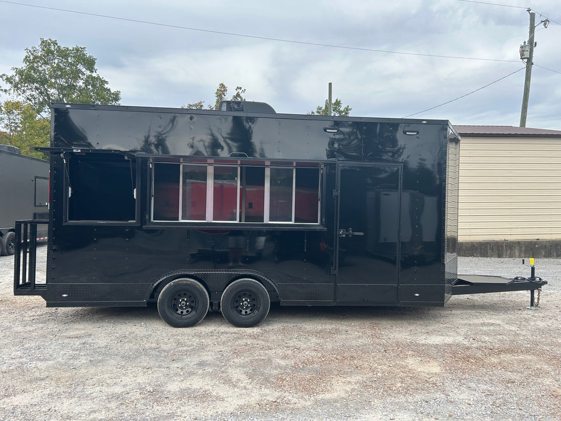 8.5' X 18' Black With Blackout Custom Concession Trailer Food Event Catering