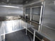 This concession trailer has (2) 100lb propane cages , 36" generator box , and has a 5' concession window with glass and screens with a flip up counter outside.