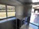 This concession trailer has a BBQ porch with removeable railing and has a 5' concession window , with A/C and heat.