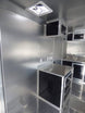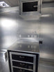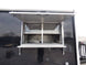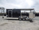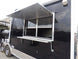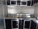 This concession trailer has a 11' black checkerboard awning , (2) 5200 lb axles with brakes , and comes with appliances.
