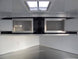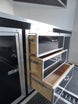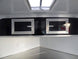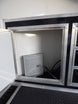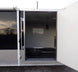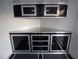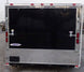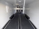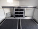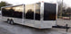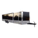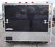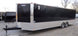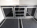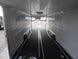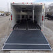 This Trailer is a enclosed trailer with cabinets in the vnose with a rear ramp and entry door.