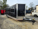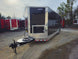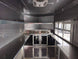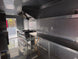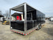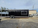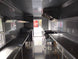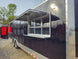 This concession trailer is an 8.5' X 30' BBQ vending concession trailer that is designed with an 8-foot porch area for a larger smoker or grill to be installed as well the inside of the trailer has a 4-foot commercial grease hood with a 24" griddle and 2 burners installed.