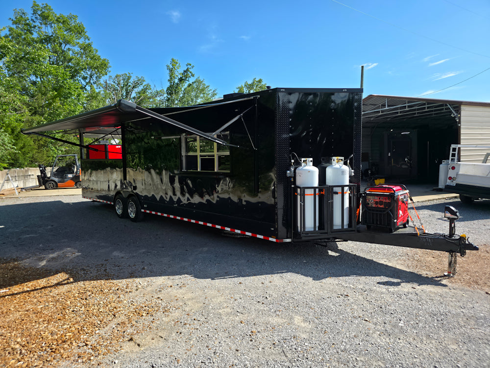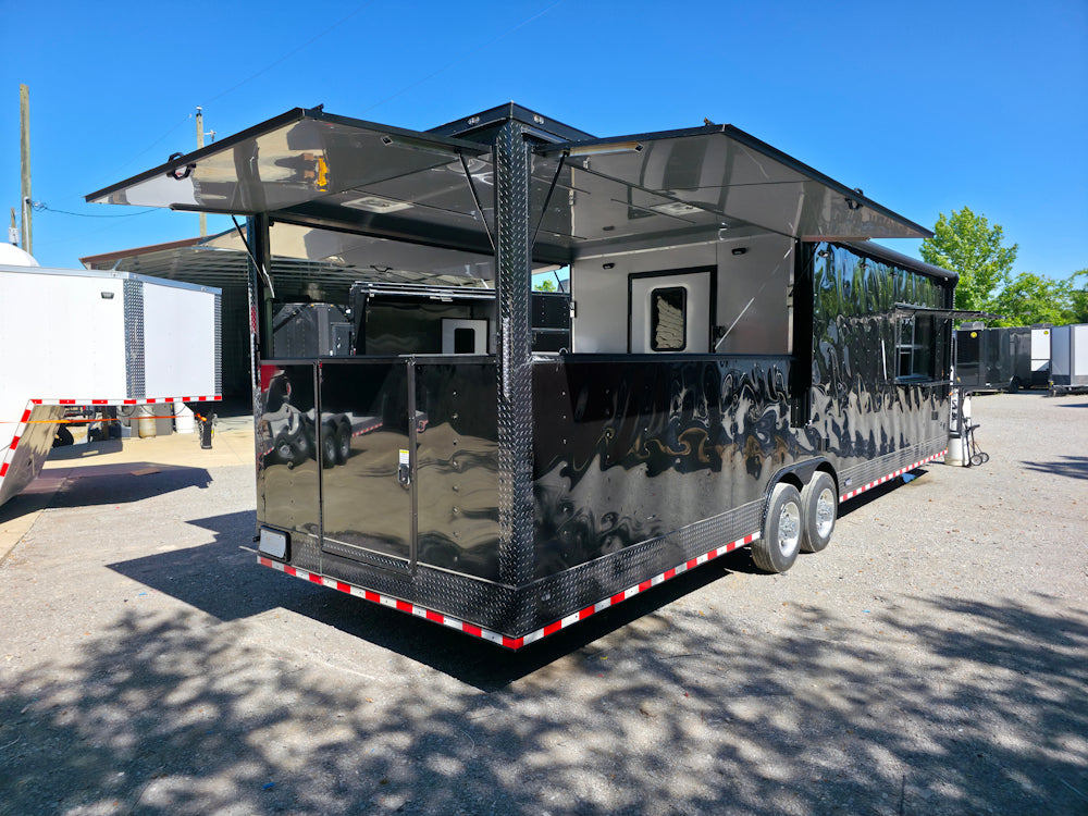 8.5' X 32' Concession Trailer Black With Blackout 12' Porch Food Event Catering