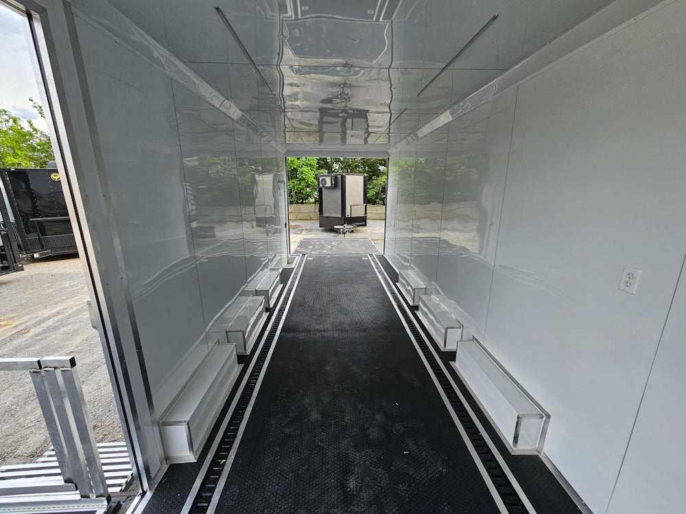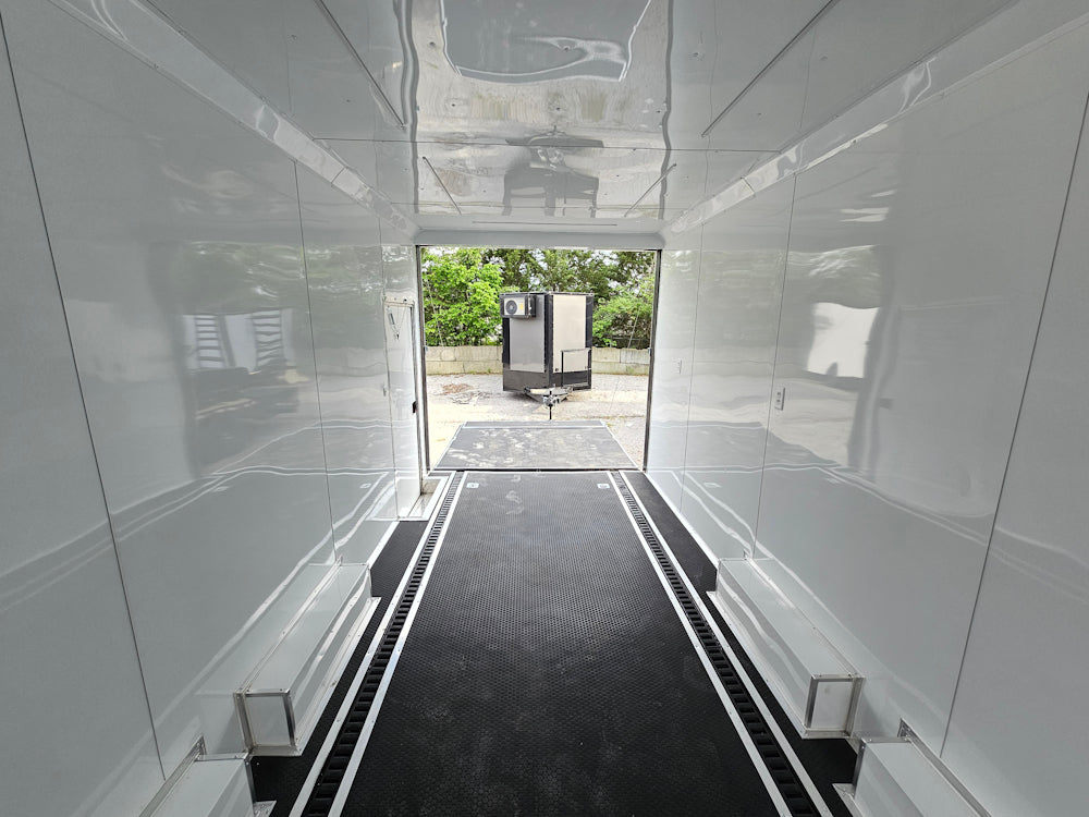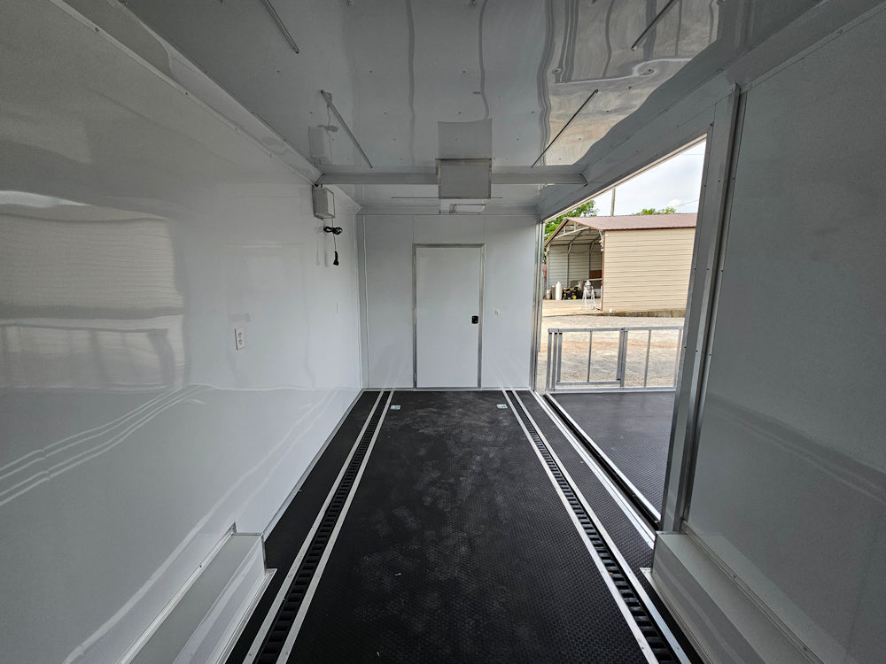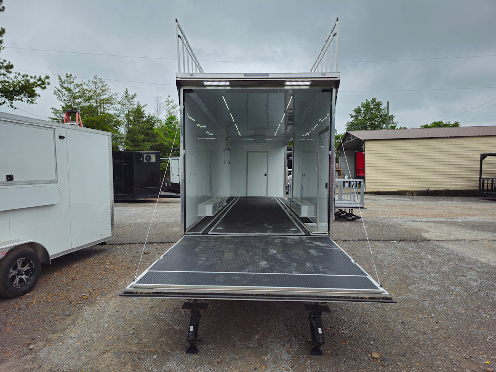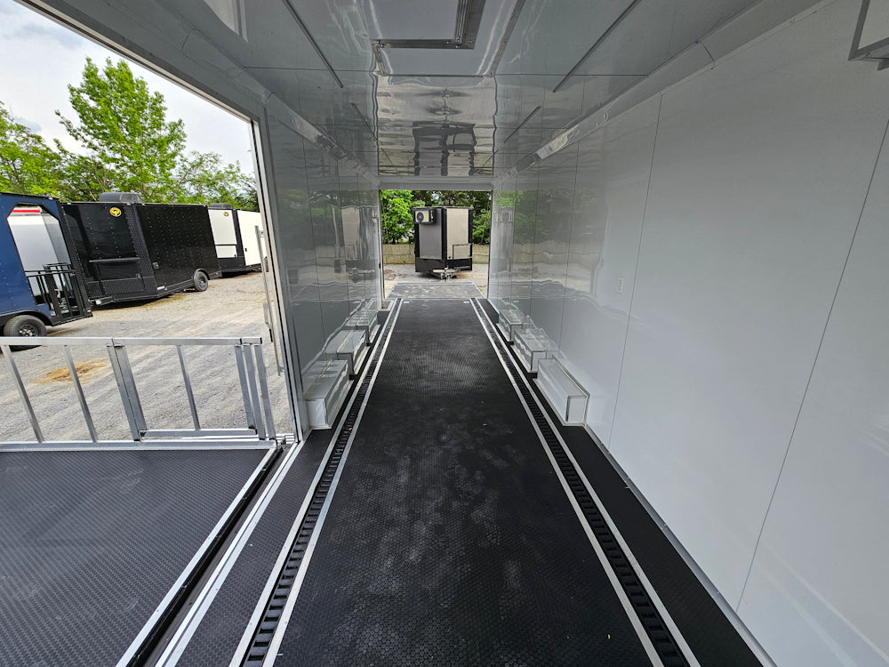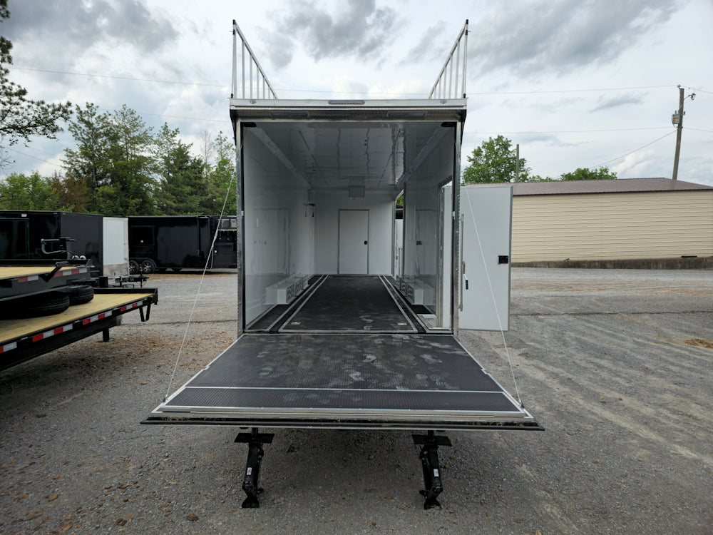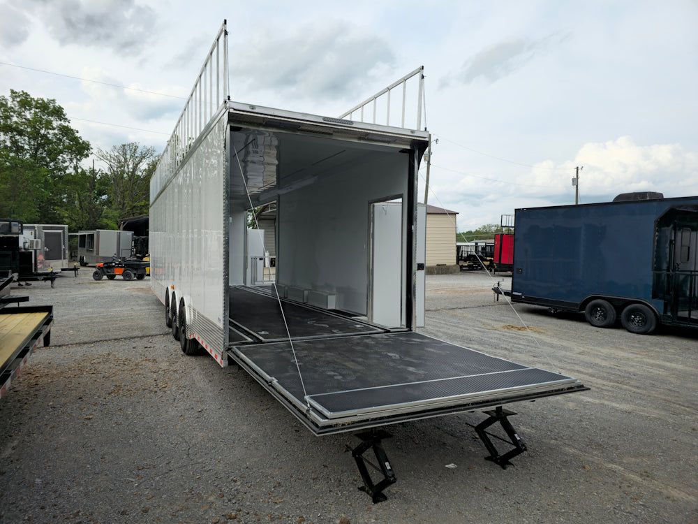 The 8.5' x 44' Gooseneck Custom Event Stage Trailer is a mobile powerhouse built for high-impact events, live performances, and brand activations. Featuring a 12' fold-out stage with railings, walk-on roof, triple 7,000 lb. axles, and a 100 Amp electric system, it's engineered for performance and presence. With sleek white aluminum finishes, full insulation, and versatile access points, this trailer delivers a professional edge on the road or on-site.
