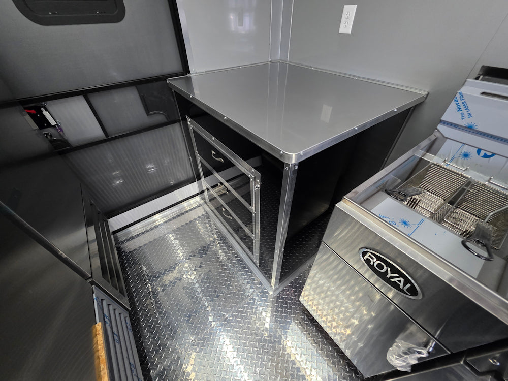 Flooring: ATP (Aluminum Tread Plate) floor covering throughout for long-lasting durability and easy cleaning