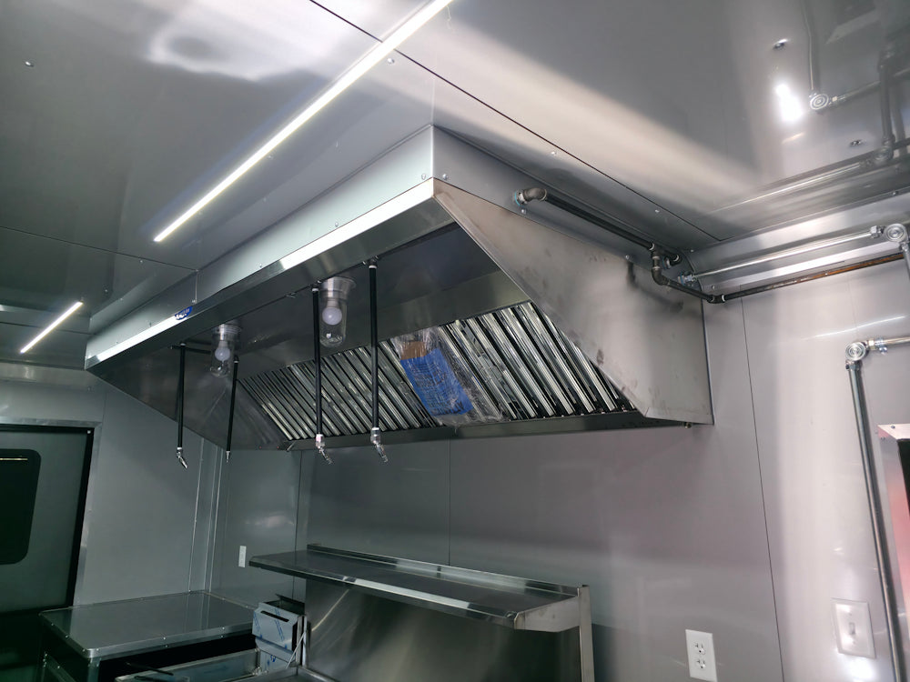 Commercial Grease Hood: Large 8' x 42" hood designed for safe and efficient ventilation of cooking equipment