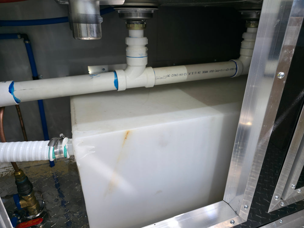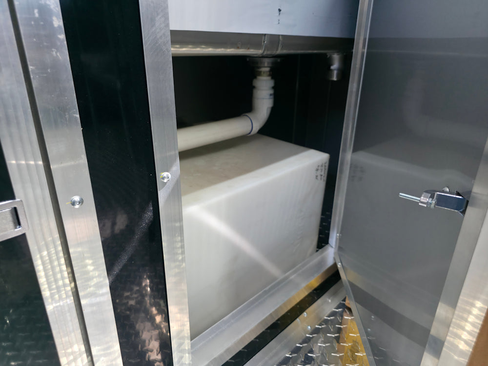 Sink & Tank Package: 30-gallon fresh water tank, 50-gallon waste tank, and standard triple sink setup
