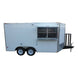 Concession trailer (14 foot) with glass serving window and fully loaded with everything except appliances. Color: white.