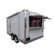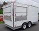 Concession trailer in white and measuss 8.5 ft. by 14 ft. It features a full sink package, 6 ft. food window, 5 ft. food window, a 10 ft. awning and more.