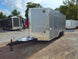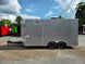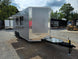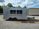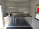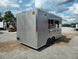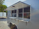 This concession trailer measures 8.5 feet by 16 feet and includes two 4-foot concession windows equipped with glass and screens. It also features an air conditioning and sink package. This trailer is ideal for individuals looking to begin their own concession business, allowing them to customize and add equipment as required.