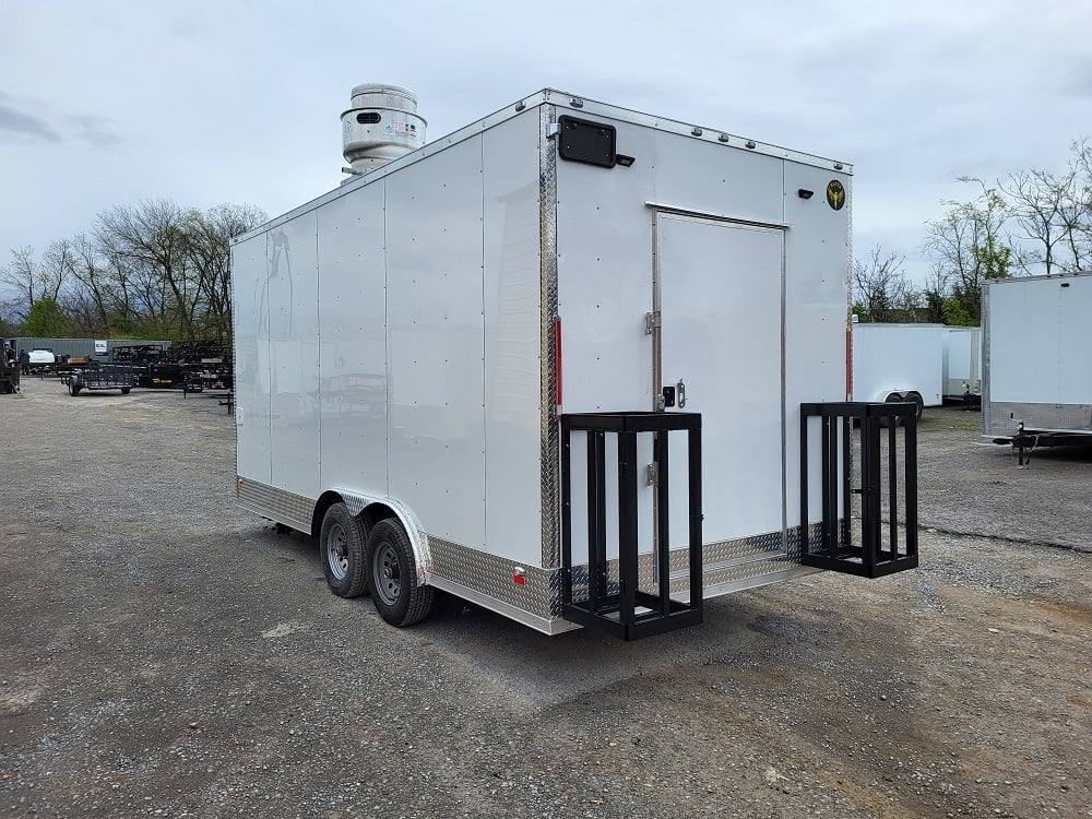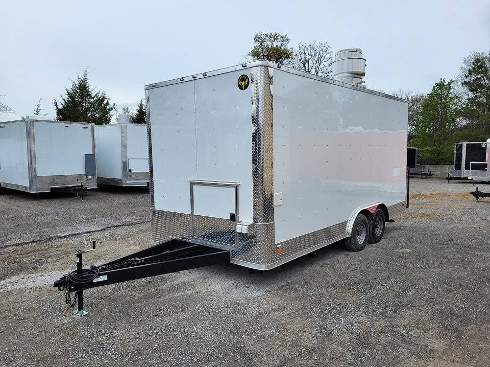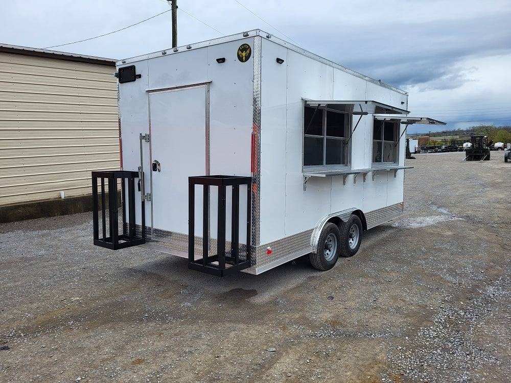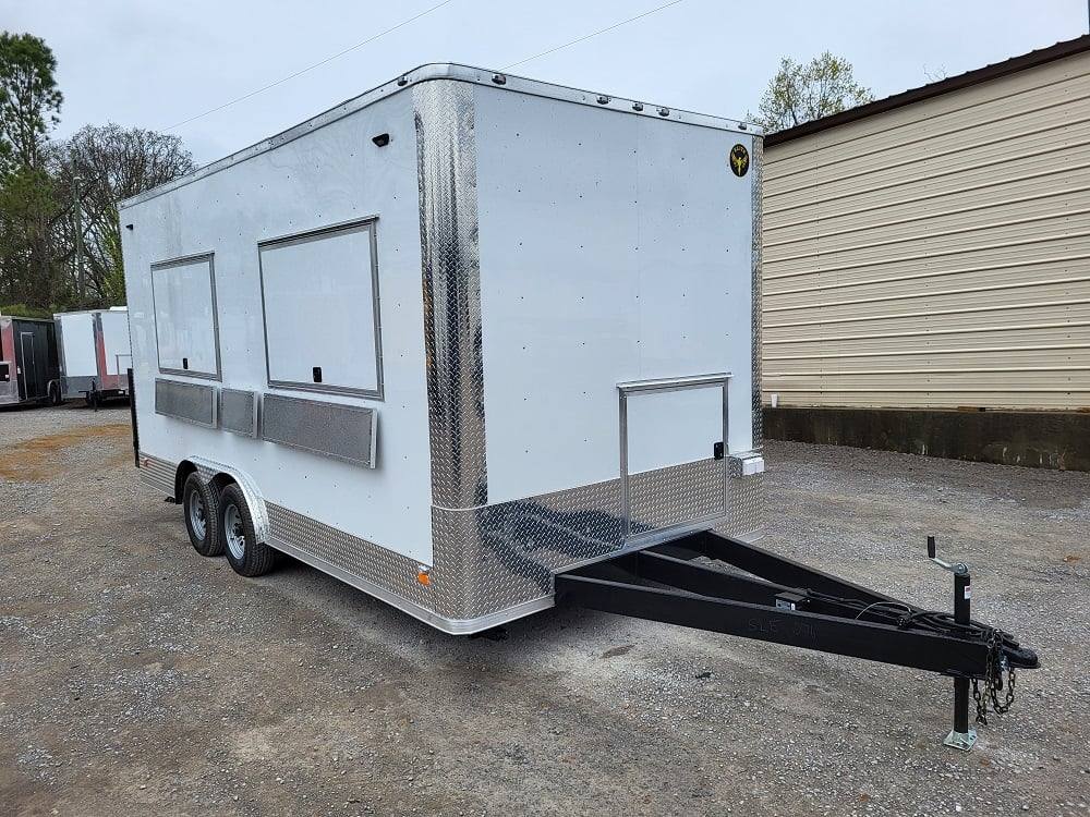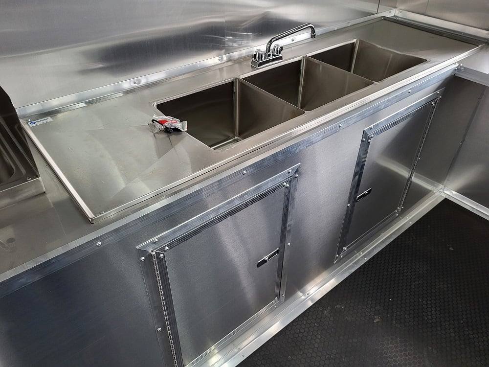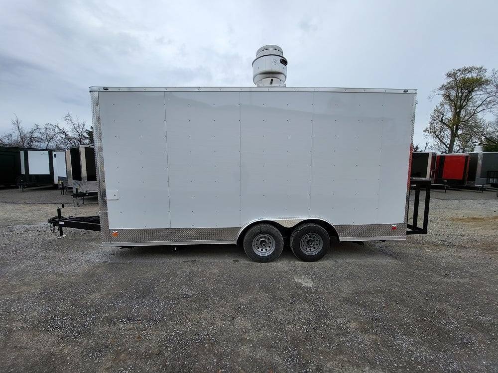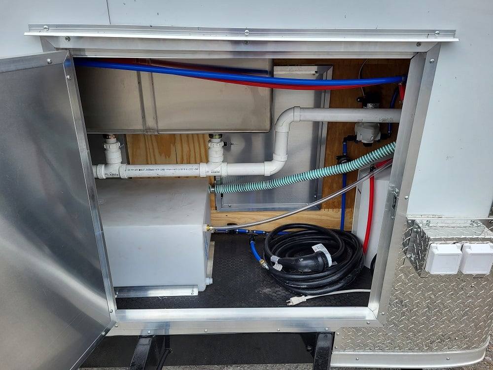 This concession trailer is designed with a 6-foot commercial grease hood, an Electric package, and all the plumbing completed. This trailer also offers two concession windows to separate order and pick-up lines.