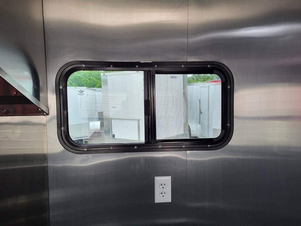 • (5') Concession Window with glass and screens. Flip-up counter outside