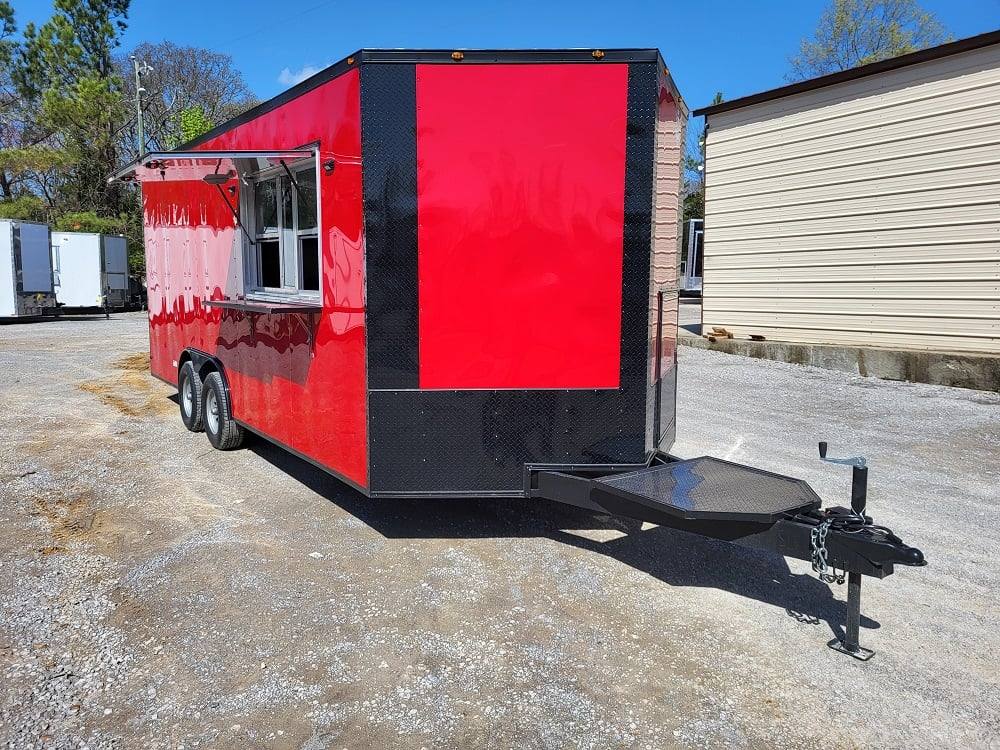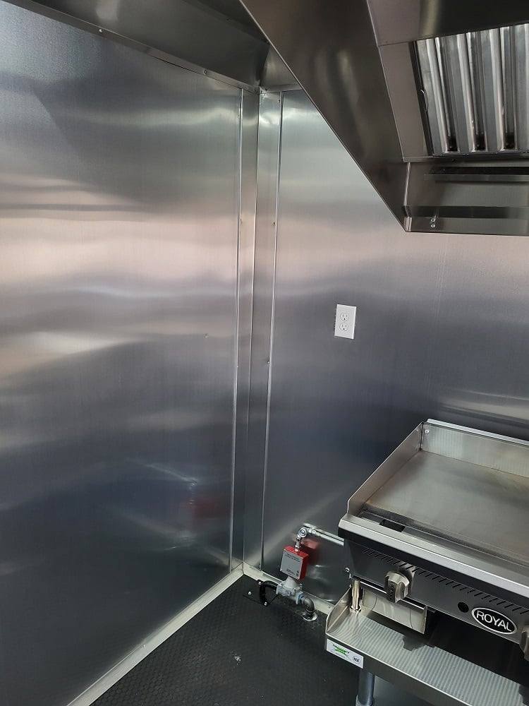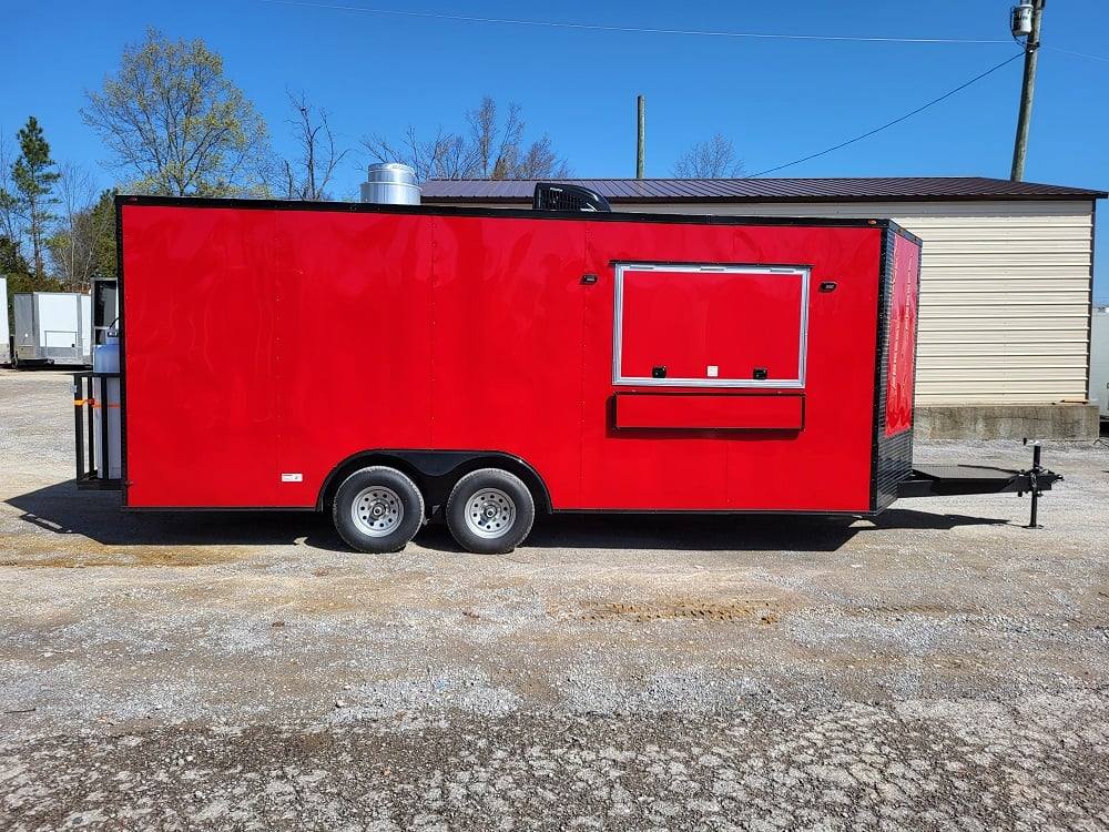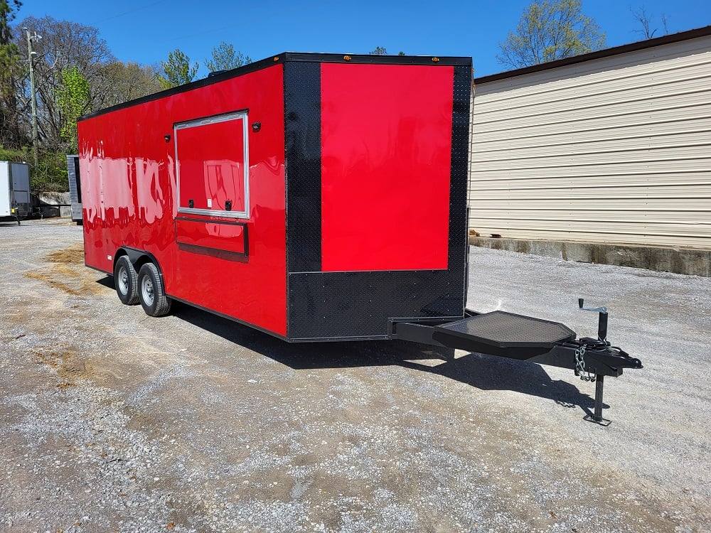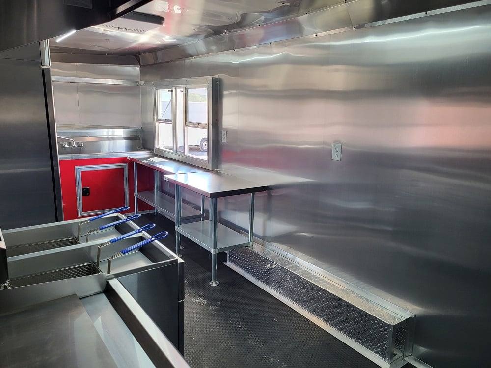 This concession trailer is an 8.5' X 20' that is designed with a 7' commercial grease hood, Sink package, and electric package. This trailer has room for additional items to be installed for future installs.