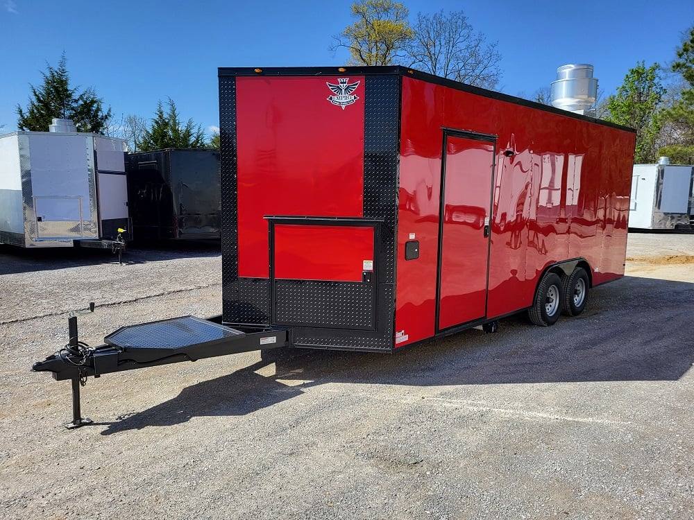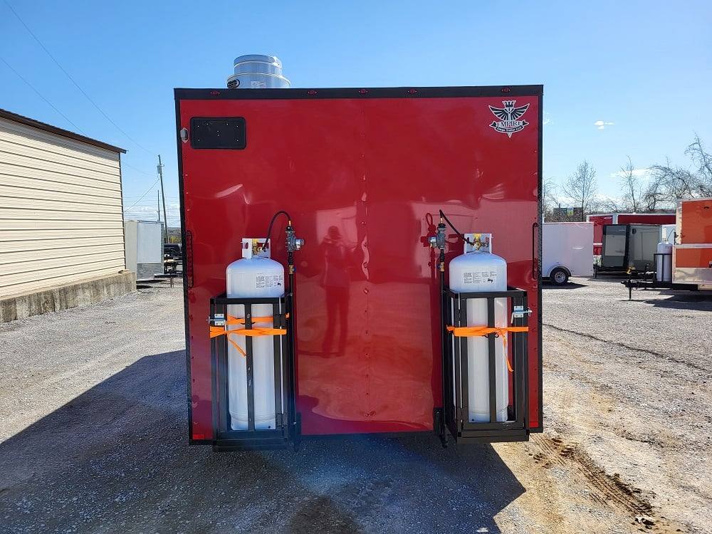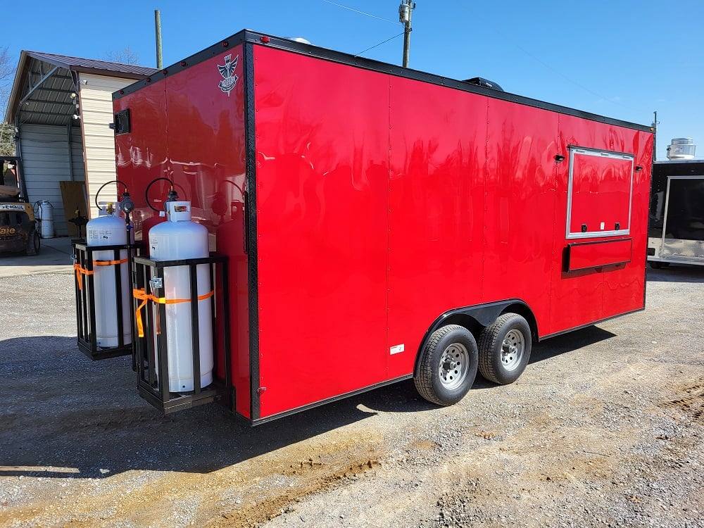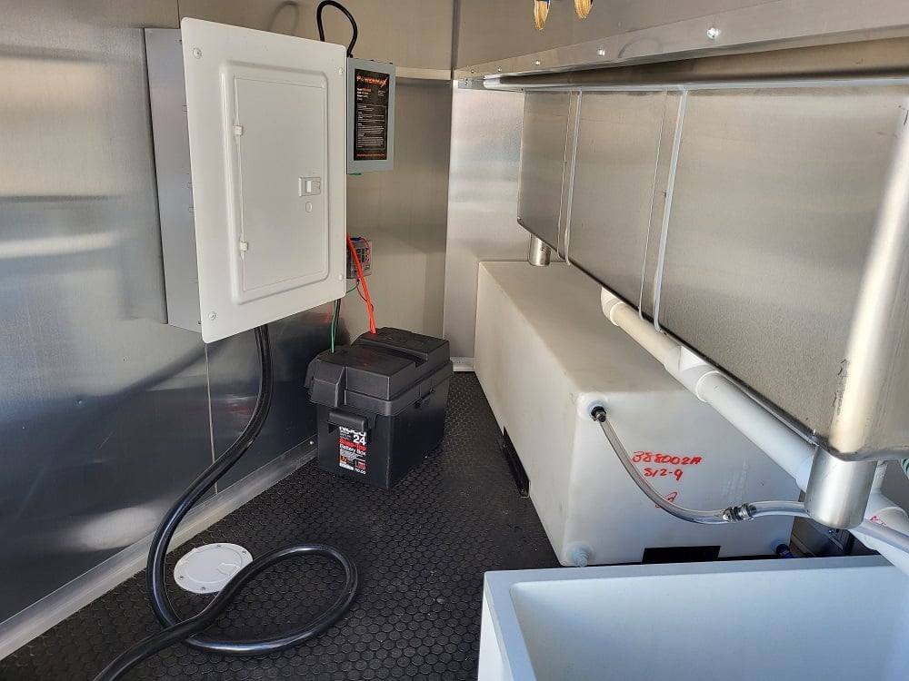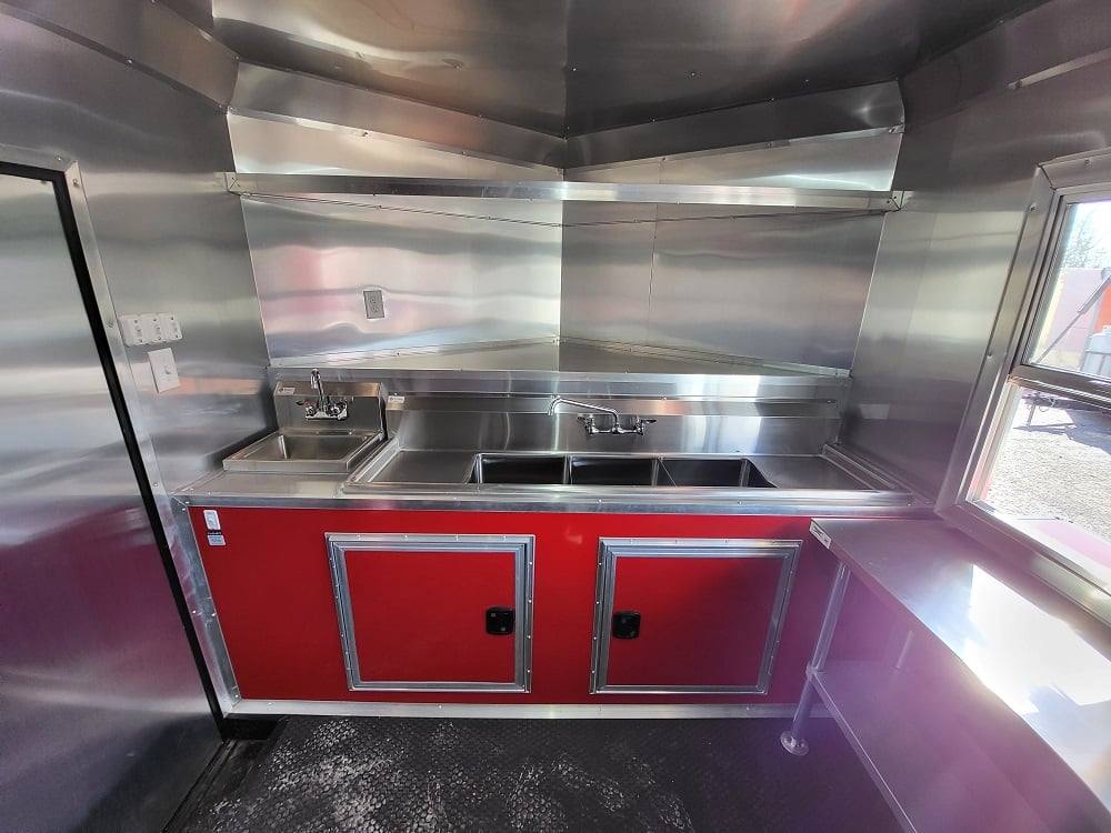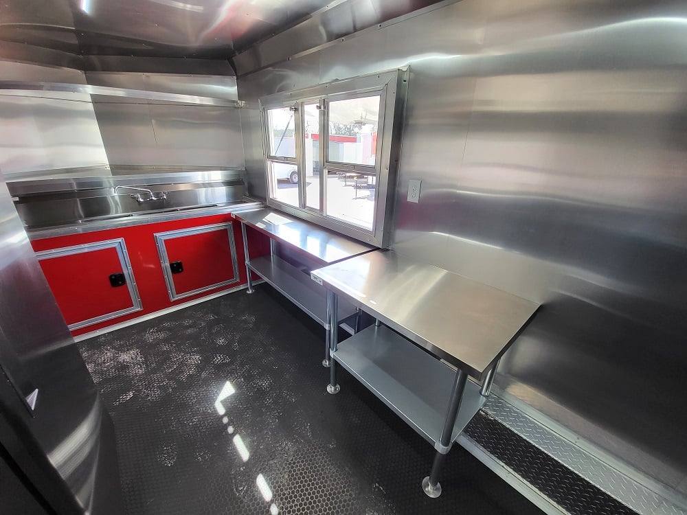 This concession trailer is an 8.5' X 20' that is designed with a 7' commercial grease hood, Sink package, and electric package. This trailer has room for additional items to be installed for future installs.