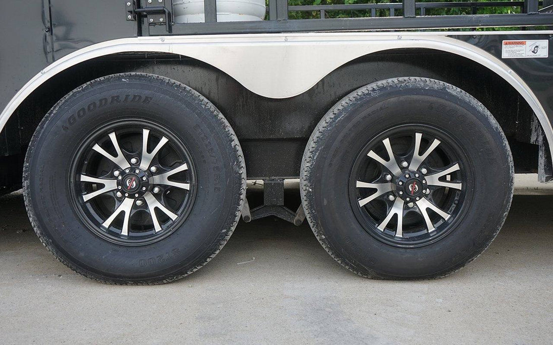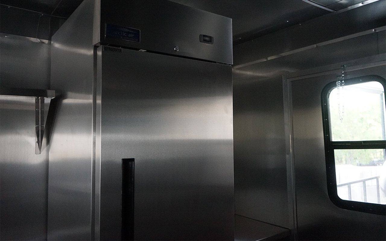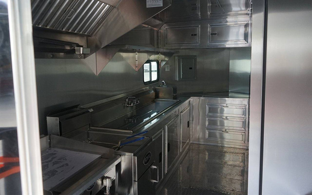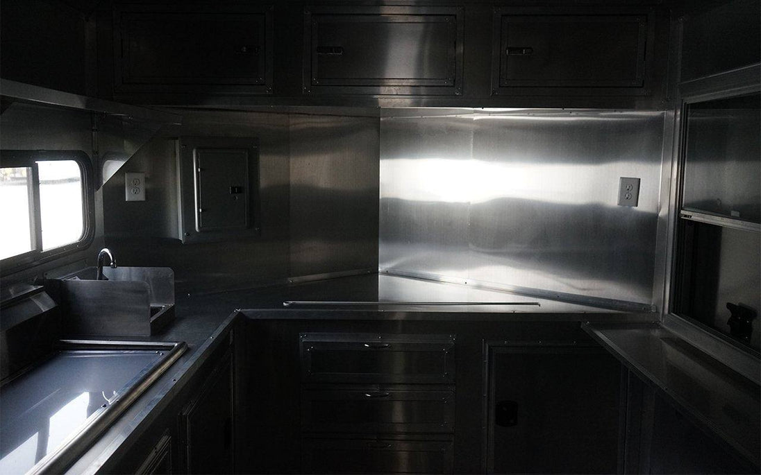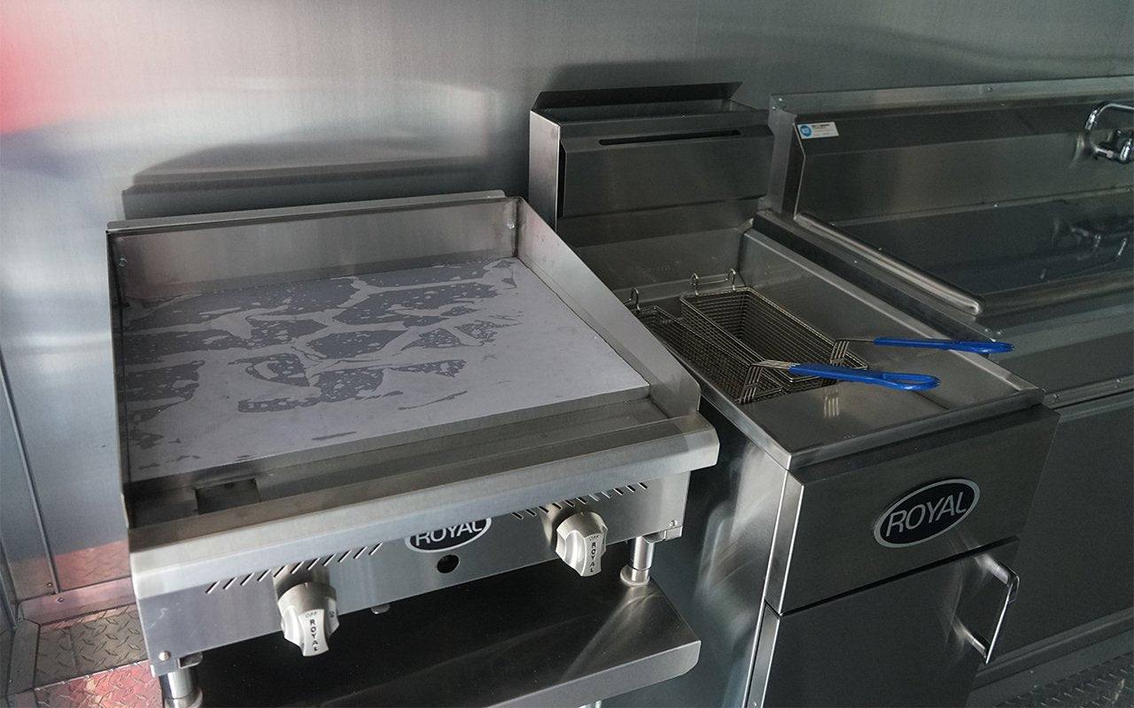 This concession trailer is an 8.5' X 24' unit that features a BBQ porch with space on the interior for cooking equipment designed with a fridge, fryer, and 24" griddle in mind. It has a 3 bay sink, hand sink with all the plumbing completed as well as an electric package installed.
