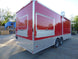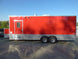 Concession Trailer 8.5 x 24 Red with 9 ft commerical grease hood, (2) 7,000 lb axles, (2) concession windows with glass and screens, 36'' generator box with slide out tray and drop leg