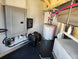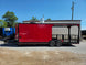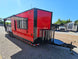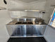 This concession trailer measures 8.5 feet by 26 feet and includes a spacious 12-foot porch designed for accommodating a smoker. The interior features a generous 14-foot kitchen area, complete with essential amenities such as a three-bay sink and a hand sink. For comfort, the trailer is equipped with air conditioning and heating systems. Additionally, it boasts an 8-foot commercial grease hood to ensure efficient ventilation during cooking operations.