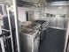 This trailer is designed with a BBQ porch offering a 12ft area and kitchen space of 16ft. The trailer comes with a sink package and an electric package installed.