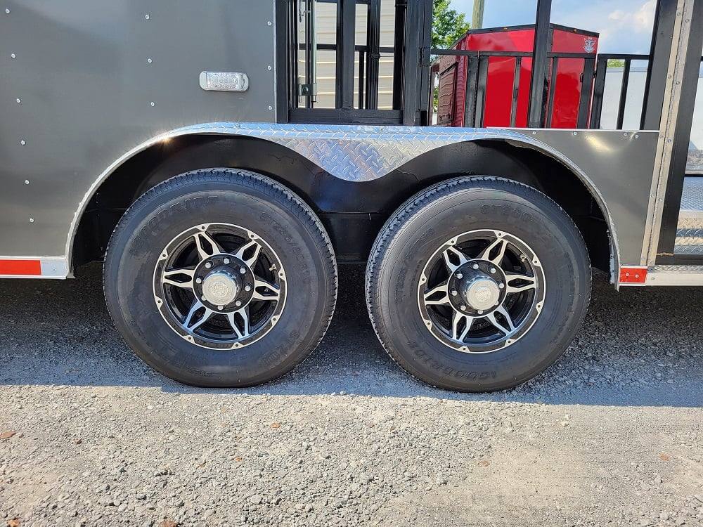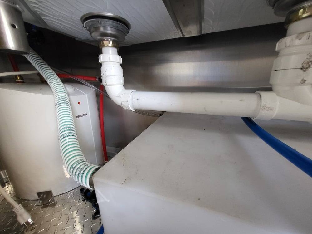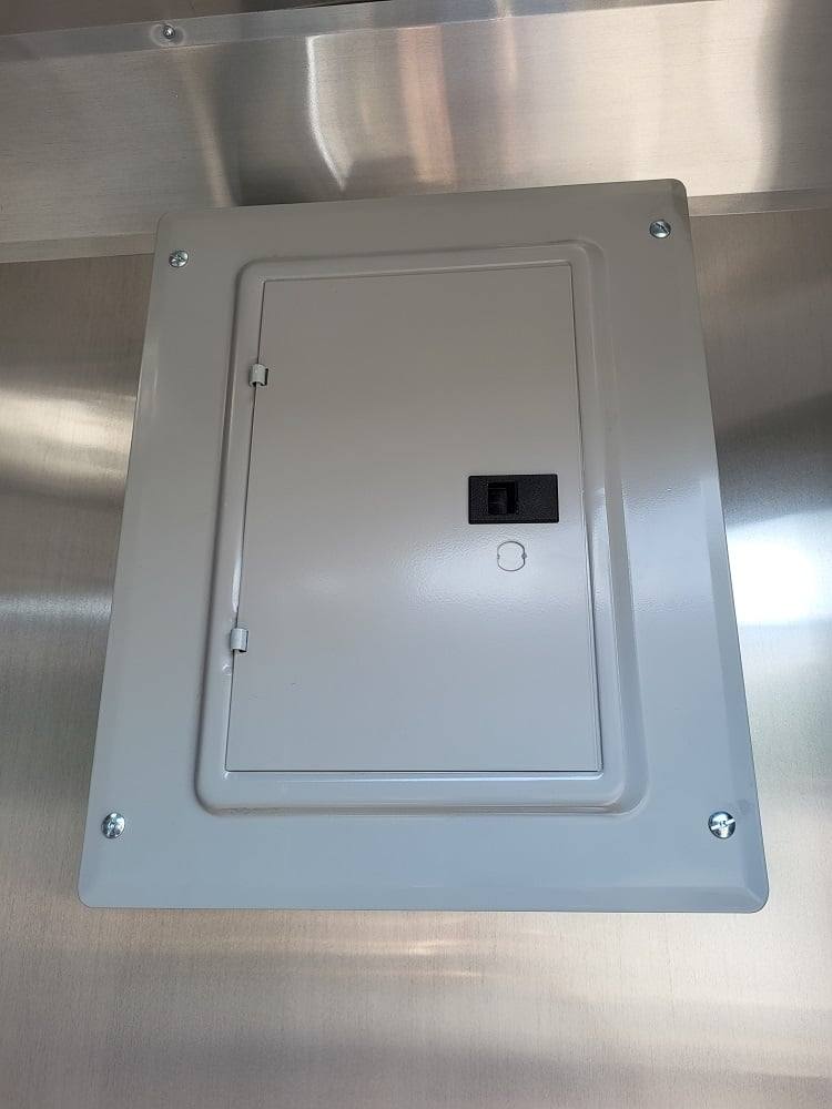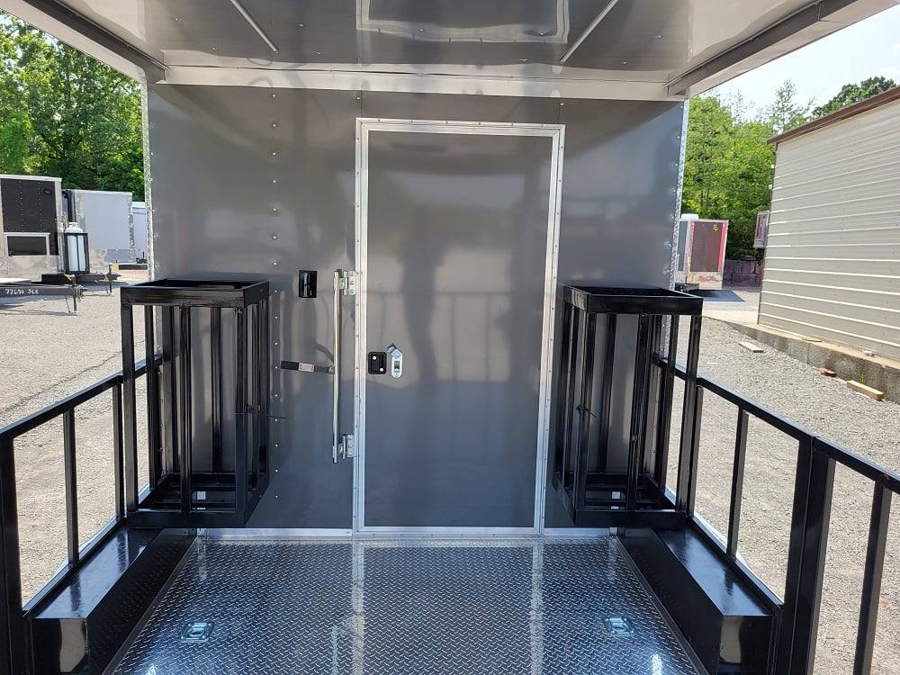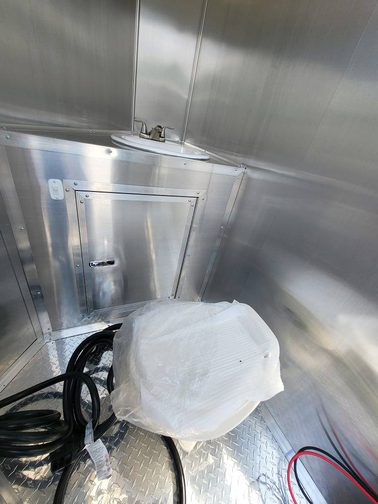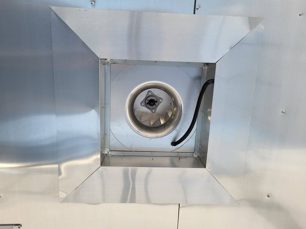 This concession trailer is designed with a 12' porch area designed for a custom smoker to be installed. This unit is designed with an extraction fan on the porch area as well as the interior kitchen comes with a 7ft commercial grease hood.