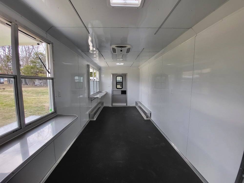 • (2) 48" x 6' Concession windows with glass and screens and flip-up counter outside