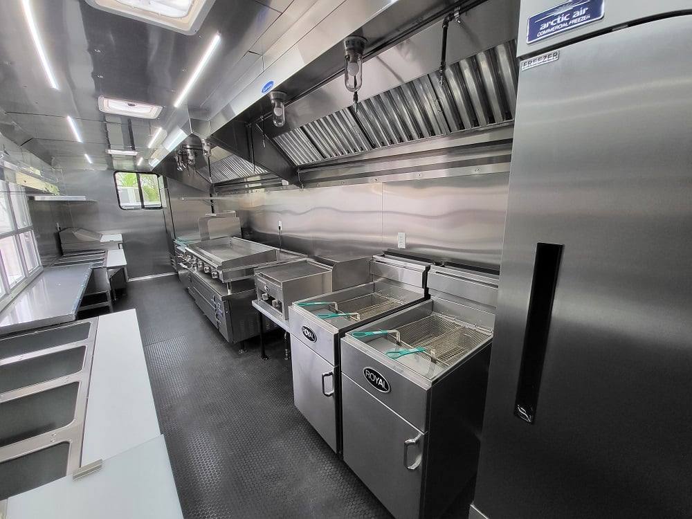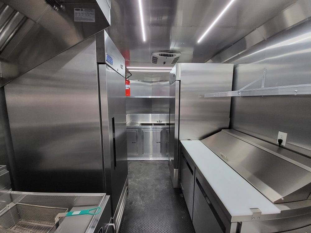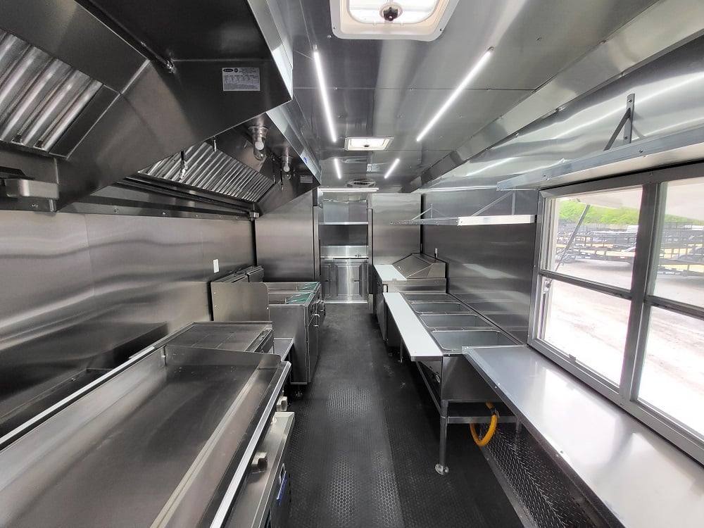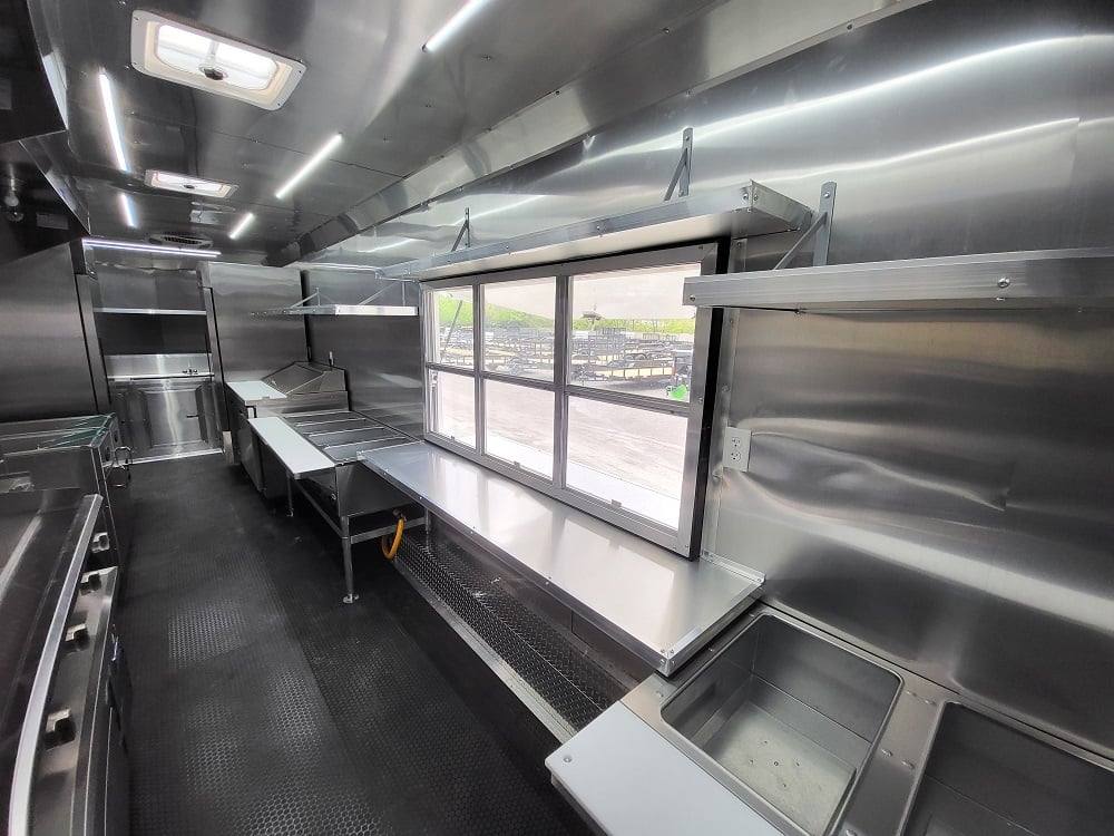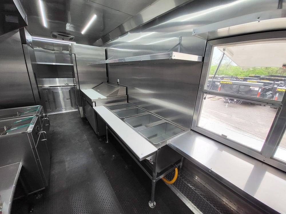 This concession trailer is designed with a large range of equipment offering a large workflow for different items to be cooked. The trailer has electric, plumbing, and a/c installed for operation.