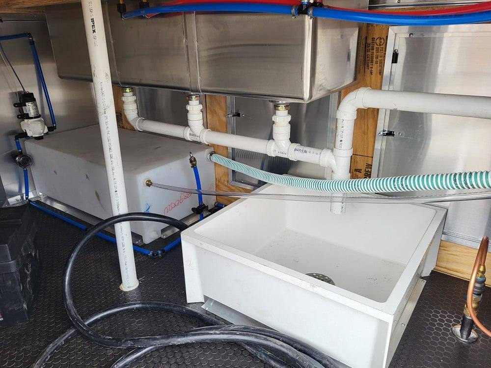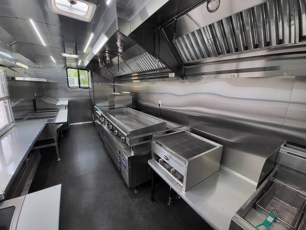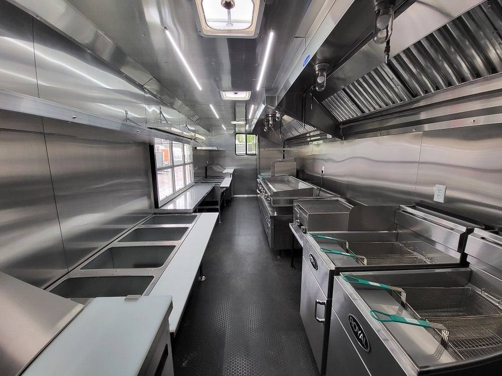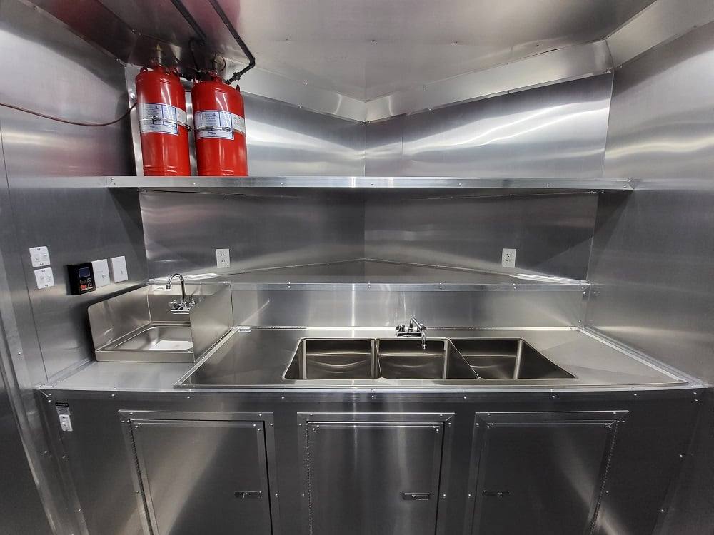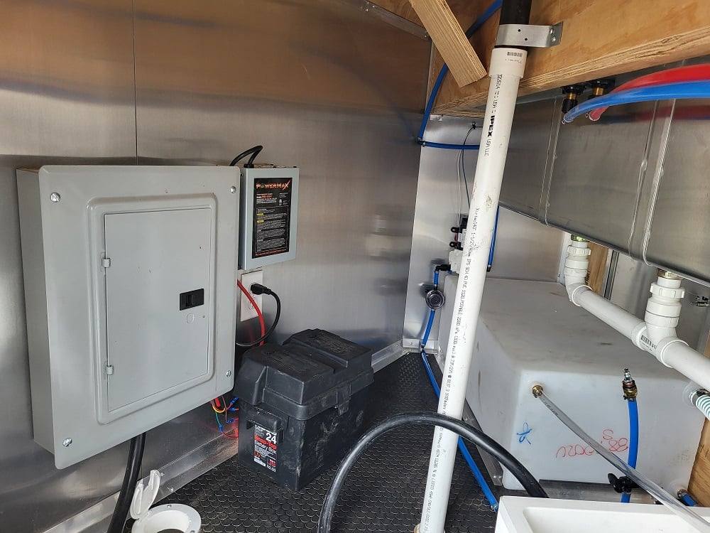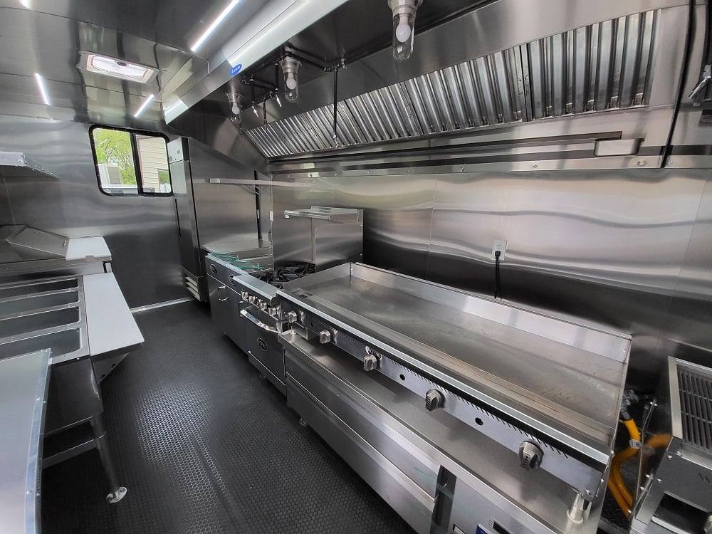 This concession trailer is designed with a large range of equipment offering a large workflow for different items to be cooked. The trailer has electric, plumbing, and a/c installed for operation.