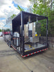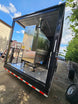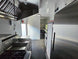 This concession trailer measures 8.5 feet by 48 feet and features an Ole Hickory smoker EL-ES mounted inside. It includes amenities such as a bathroom, electrical installations, and air conditioning and heating units. Additionally, the trailer is equipped with a commercial grease hood and various other kitchen equipment.