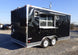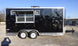 This black 16' concession features a sink package, 100amp electrical package, heat and a/c, and a cabinet and shelving package.