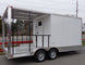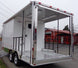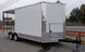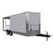 Concession trailer in white that measures 8.5 ft. by 18 ft. It features a 8 ft. porch, 10 ft. enclosed area, 18 ft. awning, 7.5 ft. interior height and more.
