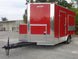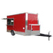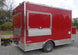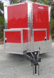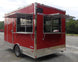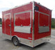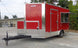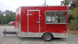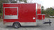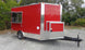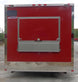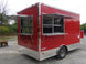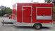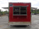 This concession trailer has a red exterior and measures 8.5 by 12 ft and 7.6' interior height. Please call 615-641-7720 for build time