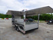 This pizza concession trailer has a black color exterior and measures 8.5 by 18 ft. Features 24" platform in height from regular floor height and supports 4,300 lbs. Please call 615-641-7720 for build time.