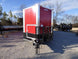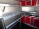This red 8.5' by 24' ft concession trailer is equipped with appliances and has a red exterior. Please call 615-641-7720 for build time