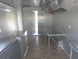 This concession trailer has a silver exterior and measures 8.5 by 24 ft. Please call 615-641-7720 for build time